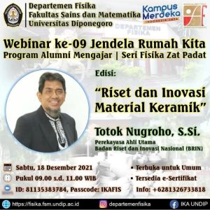 Pada Sabtu 14 Oktober 2023 telah diselenggarakan Joint Webinar kedua antara Departemen Fisika, Fakultas Sains dan Matematika (FSM), Universitas Diponegoro (UNDIP) dengan Institut Perubatan dan
