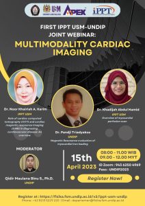 Webinar Series pertama berkaitan dengan kerjasama IPPT USM dan UNDIP telah dilaksakan pada 15 April 2023 dengan tema Multimodality Cardiac Imaging. Webinar ini diikuti oleh
