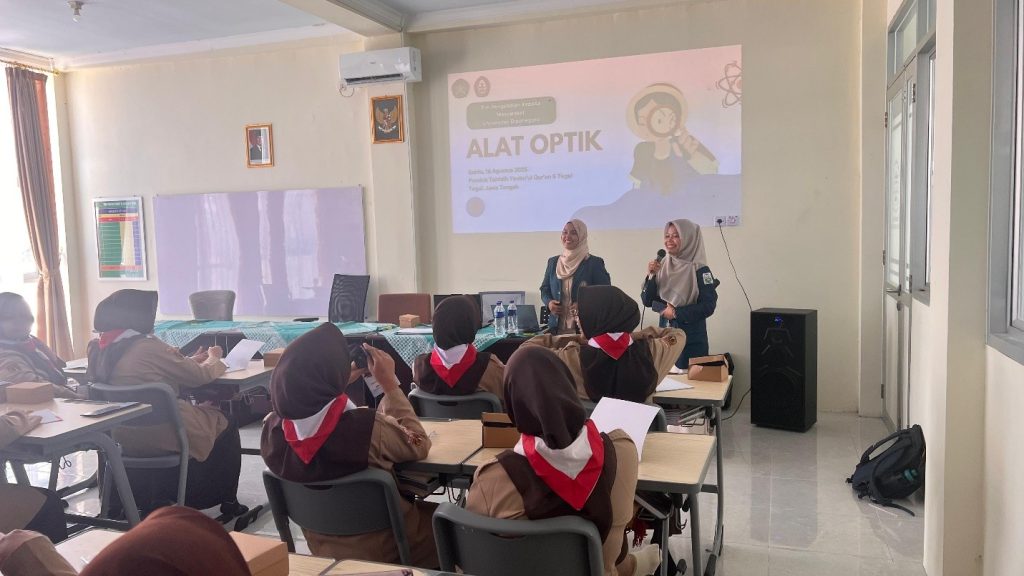 Tegal, 16 Agustus 2025 – Departemen Fisika Universitas Diponegoro (UNDIP) kembali menyelenggarakan kegiatan Pengabdian kepada Masyarakat (PKM) dengan tema “Pengenalan Optika dan Aplikasi Digital Fisika melalui Praktikum Interaktif”. Kegiatan ini berlangsung di SMA Tahfidz Yanbu’ul Qur’an 5 Tegal, Jawa Tengah, dan diikuti sekitar 30 santri dengan penuh antusias.